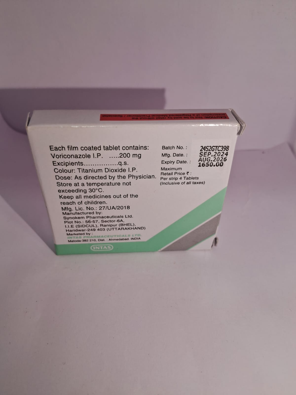 Prescription Type: Prescription only (Rx) Generic Name (Drug Name): Voriconazole Brand: Voritrop